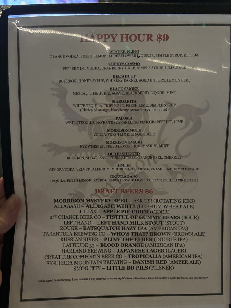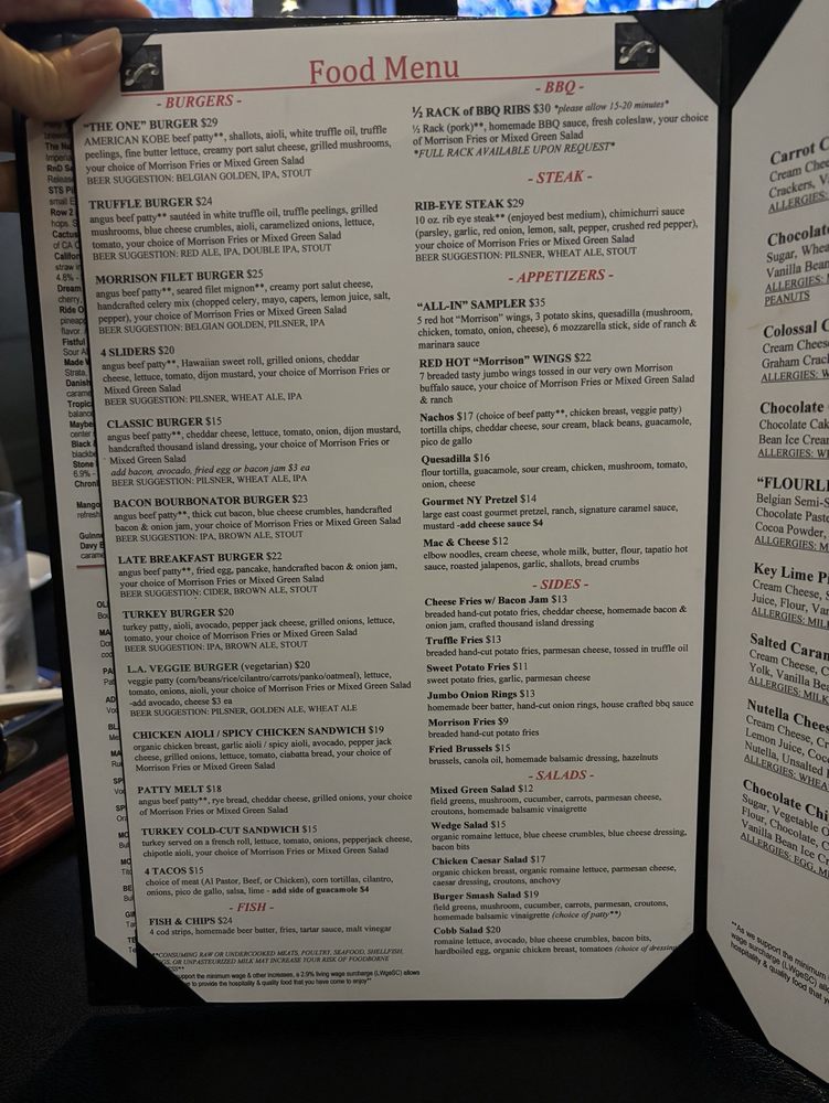 Introducing Morrison Atwater Village, a gastropub in Los Angeles offering a menu of burgers and salads. This restaurant stands out for its diverse amenities, including vegan options, wheelchair accessibility, outdoor seating, and a full bar. Customers rave about the attentive service, with servers like Keith and Teddy earning praise for their knowledge and friendliness. The standout dish is the bread pudding, described as life-changing and served with various ice cream flavors. The burger options, such as the Bacon Bourbenator and Spicy Chicken Sandwich, receive high praise for their flavorful combinations. The casual and cozy ambiance adds to the overall dining experience, making Morrison Atwater Village a must-visit destination for delicious food and exceptional service.