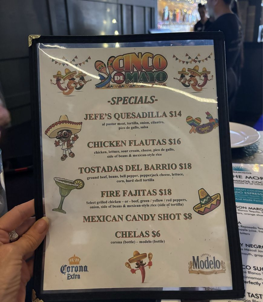 red hot Morrison wings, potato skins, quesadilla (mushroom, chicken, tomato, onion, cheese). mozzarella sticks